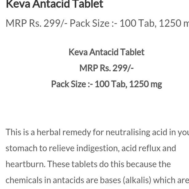 KEVA Antacid Tablets are formulated with herbal ingredients known to soothe the stomach and neutralize excess acid. These tablets help relieve symptoms of heartburn, acid reflux, gastritis, and indigestion while supporting overall digestive health.