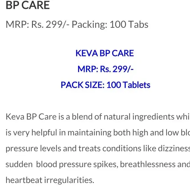 KEVA BP-Care Tablets are perfect for promoting a healthy heart, balanced blood pressure, and overall wellness naturally.