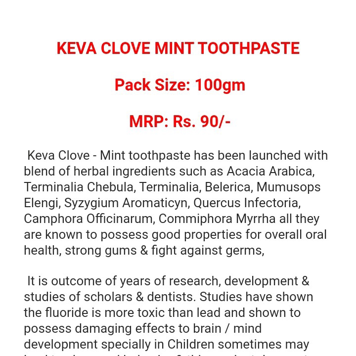KEVA Clove Toothpaste 100g is enriched with the natural goodness of clove, known for its antibacterial and soothing properties. This toothpaste helps fight germs, protects gums, reduces plaque buildup, and keeps your mouth fresh and healthy.
