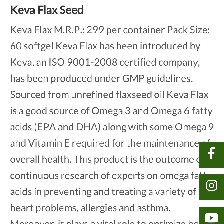 KEVA Flax Seed Capsules are made from high-quality flax seed extract, a rich source of Omega-3 fatty acids, dietary fiber, and antioxidants. These capsules support heart health, help maintain healthy cholesterol levels, improve digestion, and promote overall wellness.