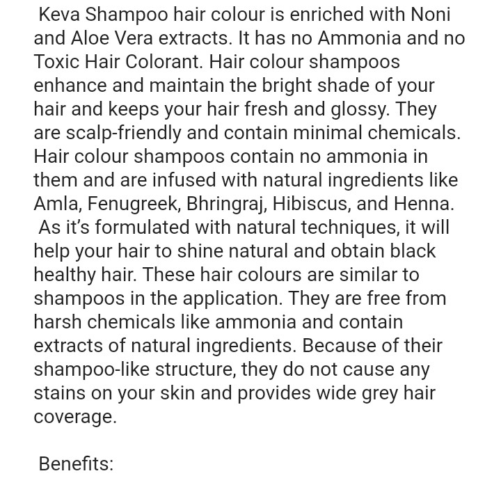 KEVA Hair Colour 20g is designed to provide effective grey hair coverage with a natural-looking finish. Its smooth formulation spreads evenly on hair, giving rich and long-lasting colour while maintaining hair softness and shine.