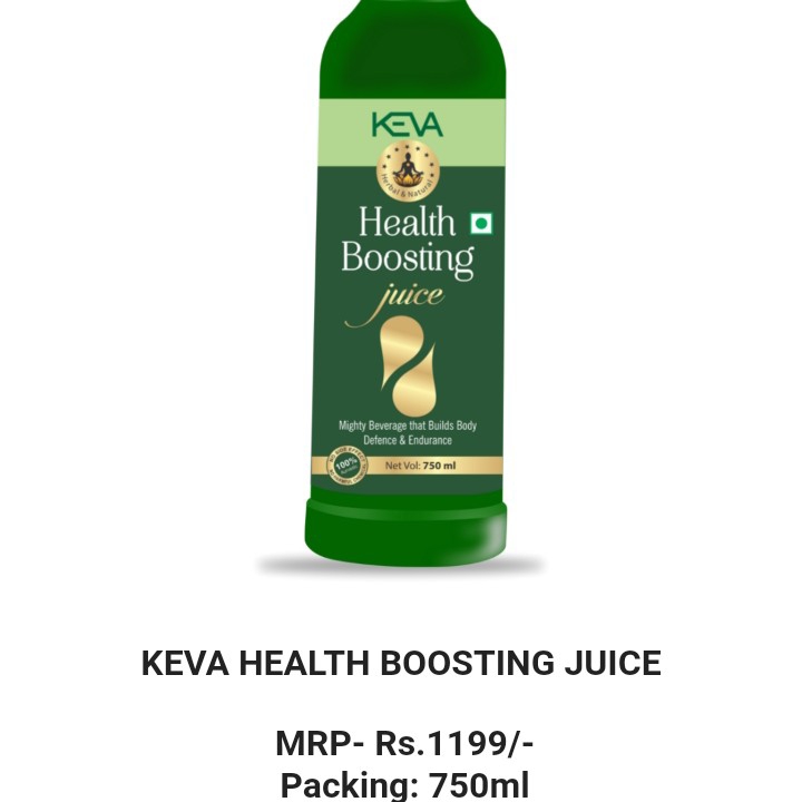 KEVA Health Boosting Juice 750 ML is a premium natural juice formulated to enhance immunity, boost energy, and support overall wellness. Enriched with essential vitamins, minerals, and herbal extracts, this refreshing drink is ideal for adults and children alike.