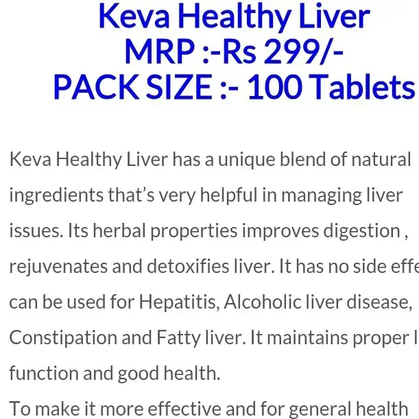 Gemini said येथे तुमच्या KEVA Healthy Liver Tablets साठी एक प्रोफेशनल आणि SEO-फ्रेंडली Long Description दिली आहे. यामध्ये आपण कीवर्ड्स, शिपिंग, आणि ब्रँड व्हॅल्यू सर्व काही समाविष्ट केले आहे: Product Long Description (Copy & Paste): "Looking for a natural way to support your liver? KEVA Healthy Liver Tablets is the #1 Best herbal formulation designed to detoxify and rejuvenate your liver naturally. These 100 tablets are packed with potent Ayurvedic herbs that help improve digestion, boost metabolism, and enhance your overall vitality.