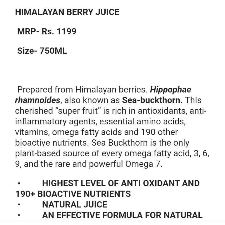 Ideal for daily consumption, this juice helps maintain vitality, improves stamina, and provides a delicious and refreshing way to stay healthy. Packaged in a convenient 750 ML bottle, KEVA Himalayan Berry Juice ensures freshness and easy serving.