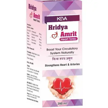 KEVA Hriday Amrit Syrup 200ml is a herbal formulation designed to support heart health and maintain cardiovascular wellness. Regular use helps improve blood circulation, strengthen the heart, and promote overall vitality.