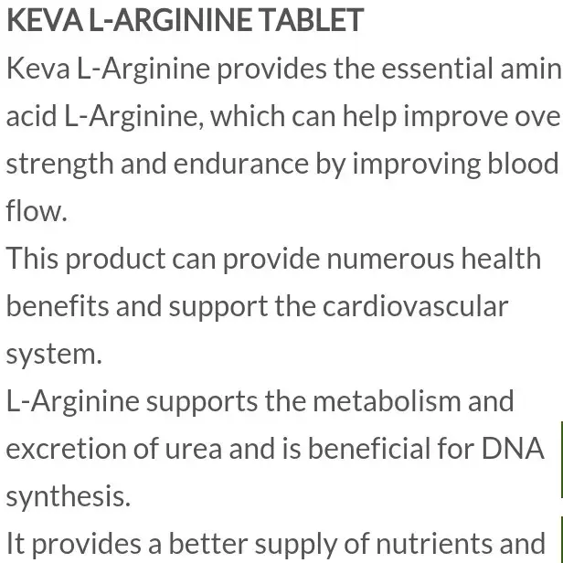 KEVA L-Arginine Tablets are formulated with the amino acid L-Arginine, known for its role in supporting nitric oxide production, improving blood flow, and enhancing cardiovascular health. Proper circulation and heart function are essential for stamina, energy, and overall vitality.