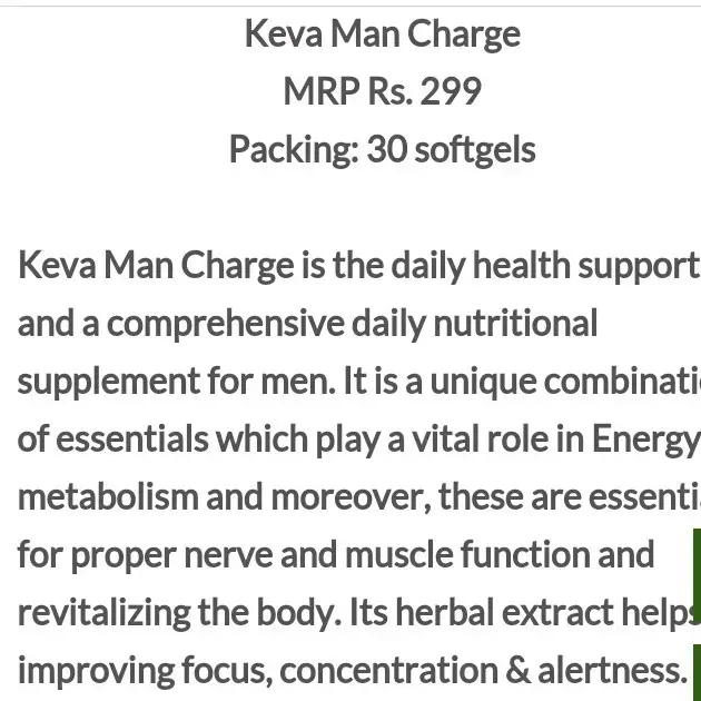 KEVA Man Charge Softgel is formulated with premium herbal ingredients traditionally used to enhance male energy, stamina, and overall vitality. Maintaining physical and mental strength is essential for daily performance, confidence, and wellness.