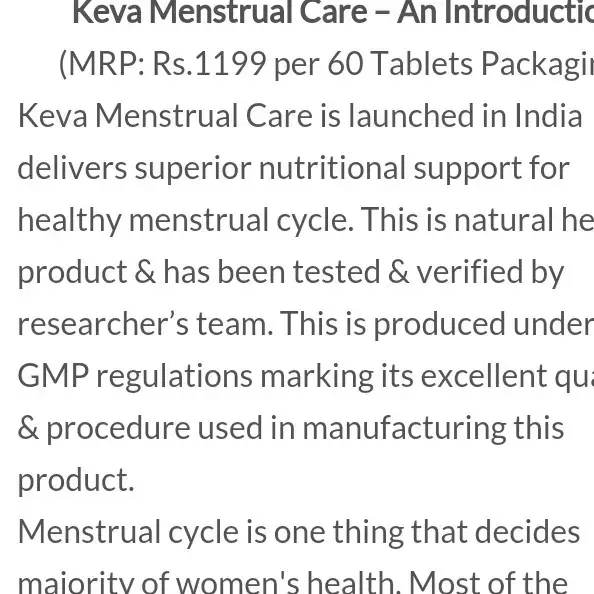 KEVA Menstrual Care Tablets help support menstrual health and hormonal balance naturally. Reduces period discomfort, cramps, and promotes overall women’s wellness.