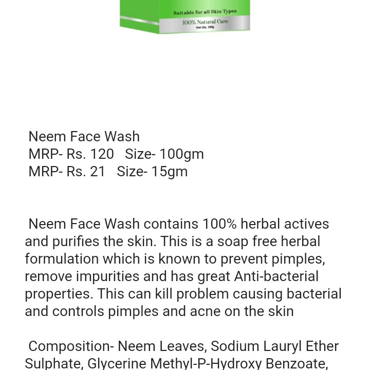KEVA Neem Face Wash 100g is specially formulated with the goodness of neem to deeply cleanse the skin and help control excess oil. Known for its antibacterial properties, neem helps fight acne-causing bacteria, prevent pimples, and keep skin healthy and refreshed.