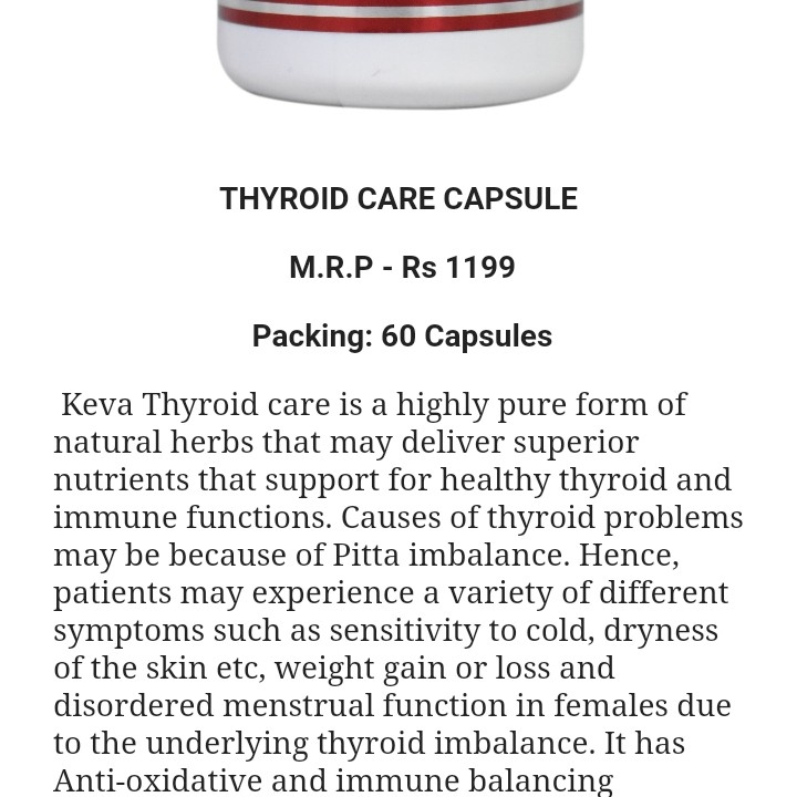 Q: Can I take KEVA Thyroid Care Capsules with my current medication? A: These are 100% herbal. However, if you are already on thyroid medication, we recommend consulting your healthcare provider before starting any new supplement.