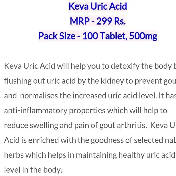 🌿 KEVA Uric Acid Tablets – Natural Support for Healthy Joints & Uric Acid Levels